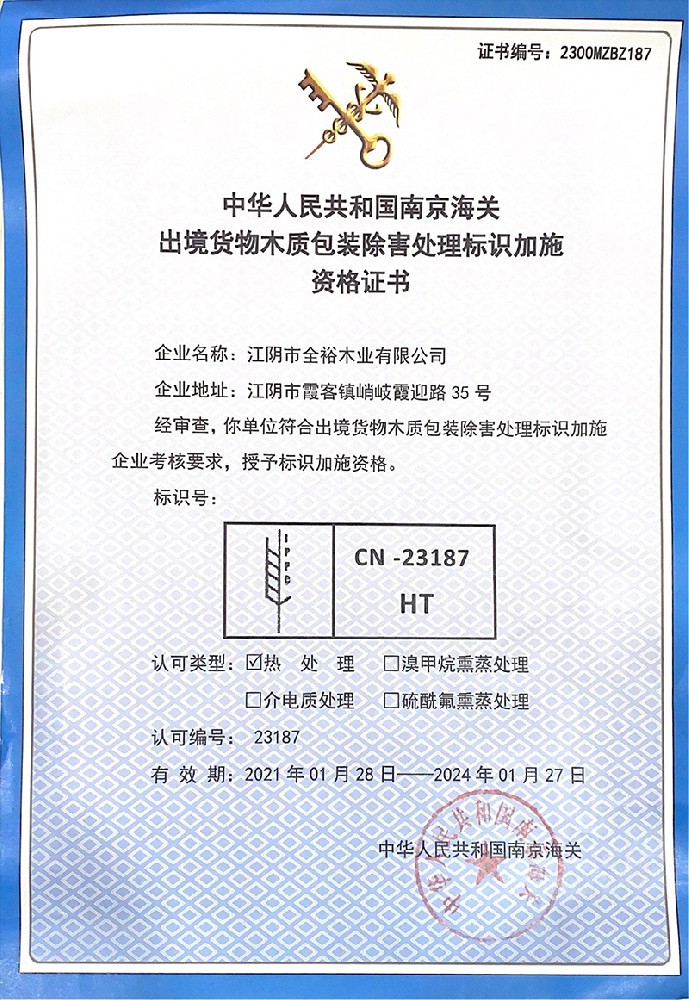 江陰市全裕木業(yè)有限公司成立于2001年,位于中國江蘇省江陰市。公司業(yè)務(wù)范圍主要涵蓋原木貿易,原木加工,木制品設計與制作,木托盤(pán)、熏蒸木箱,大型設備包裝,特種包裝及循環(huán)返復使用包裝,一站式工業(yè)包裝整體解決方案(CPS)服務(wù)等,已形成了一支集設計、制造、包裝、運輸為一體的自主研發(fā)實(shí)力型團隊。作為中國優(yōu)秀的國際化木業(yè)企業(yè)之一,全裕木業(yè)深入踐行習近平生態(tài)文明思想,...